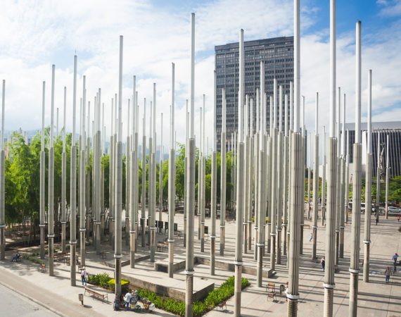 It is a public space where an artificial forest was created with 300 posts that illuminate the square at night. Around it is the EPM library so it is very frequented by young people, and there are also bars and billiards, which makes older adults walk around the area as well.
