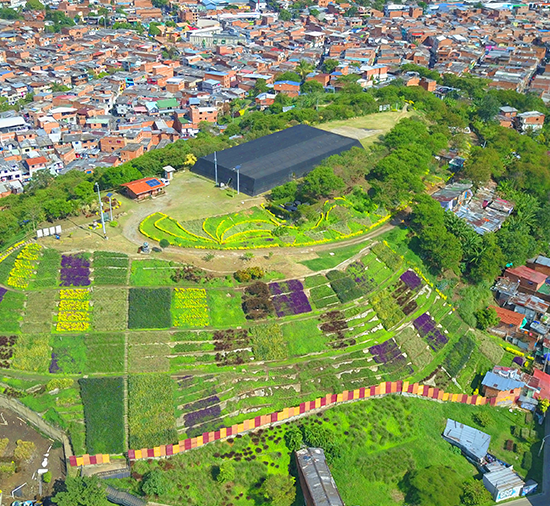 En el nororiente de la ciudad habita una comunidad compuesta tradicionalmente por familias desplazadas que construyeron sus viviendas en el antiguo basurero municipal, hoy transformado en uno de los jardines de flores más grandes de la ciudad: el Barrio Moravia, un referente de turismo comunitario en Medellín.